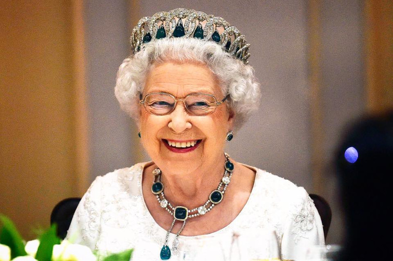 Koningin Elizabeth met het Vladimir-diadeem met de parels.