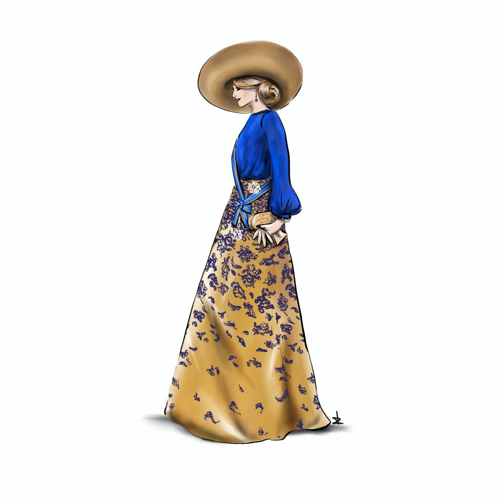 De Rotterdamse Linda Zoon tekent al jaren de outfits van onze koningin. Zodra Máxima ergens in het openbaar is verschenen, kun je op social media van Linda een tekening vinden van de outfit van die dag. Linda: ‘Met Koningsdag, Prinsjesdag, en tijdens werkbezoeken heeft ze altijd bijzondere outfits aan. Vaak haute couture van nationale en internationale modeontwerpers, maar ook in casual outfits ziet ze er fantastisch uit. Een mooie lange jas, een lange pantalon en een zwierige sjaal maakt het helemaal af. Ik probeer zoveel mogelijk verschillende creaties te tekenen. Ik ben dan ook heel benieuwd wat ze zal dragen op haar verjaardag… ik zit dan al klaar met mijn papier en potloden voor de tv want dat wil graag vastleggen.’