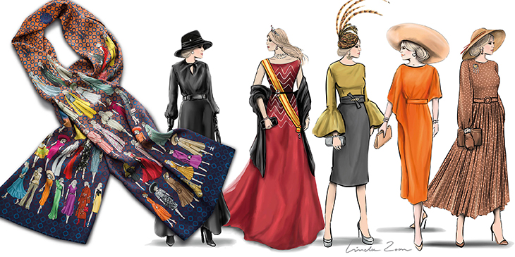 Toen koningin Máxima vorig jaar 49 jaar werd, bedacht Linda dat ze iets bijzonders wilde doen met haar illustraties. ‘Ik dacht: Hoe geweldig zou het zijn om deze beelden “tot leven” te zien komen op een prachtige sjaal? Een echt collector’s item ter ere van de 50ste verjaardag van onze vorstin. Die je sportief kunt dragen, maar ook bij een een chique en stijlvolle outfit. Máxima is een stijlicoon, zij inspireert mij enorm door haar fantastische smaak, gevoel voor stijl en oog voor detail.’