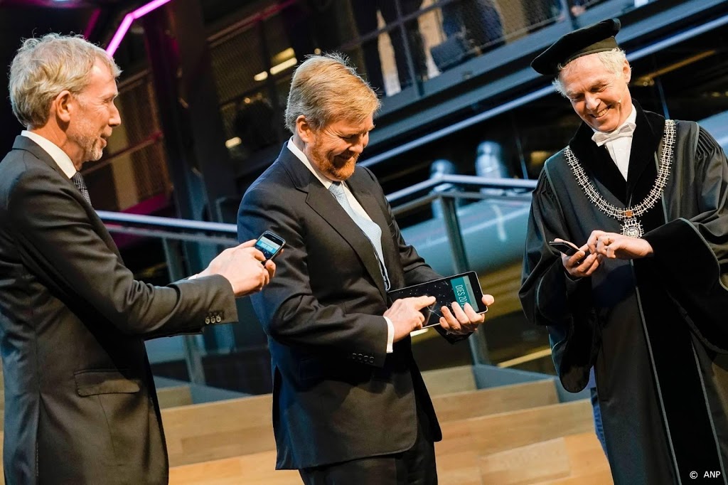 Willem-Alexander heeft vrijdag het nieuwe TechMed Centre voor innovatie van de gezondheidszorg van de Universiteit Twente in Enschede geopend. De koning deed dit op passende wijze, swipend op een iPad.