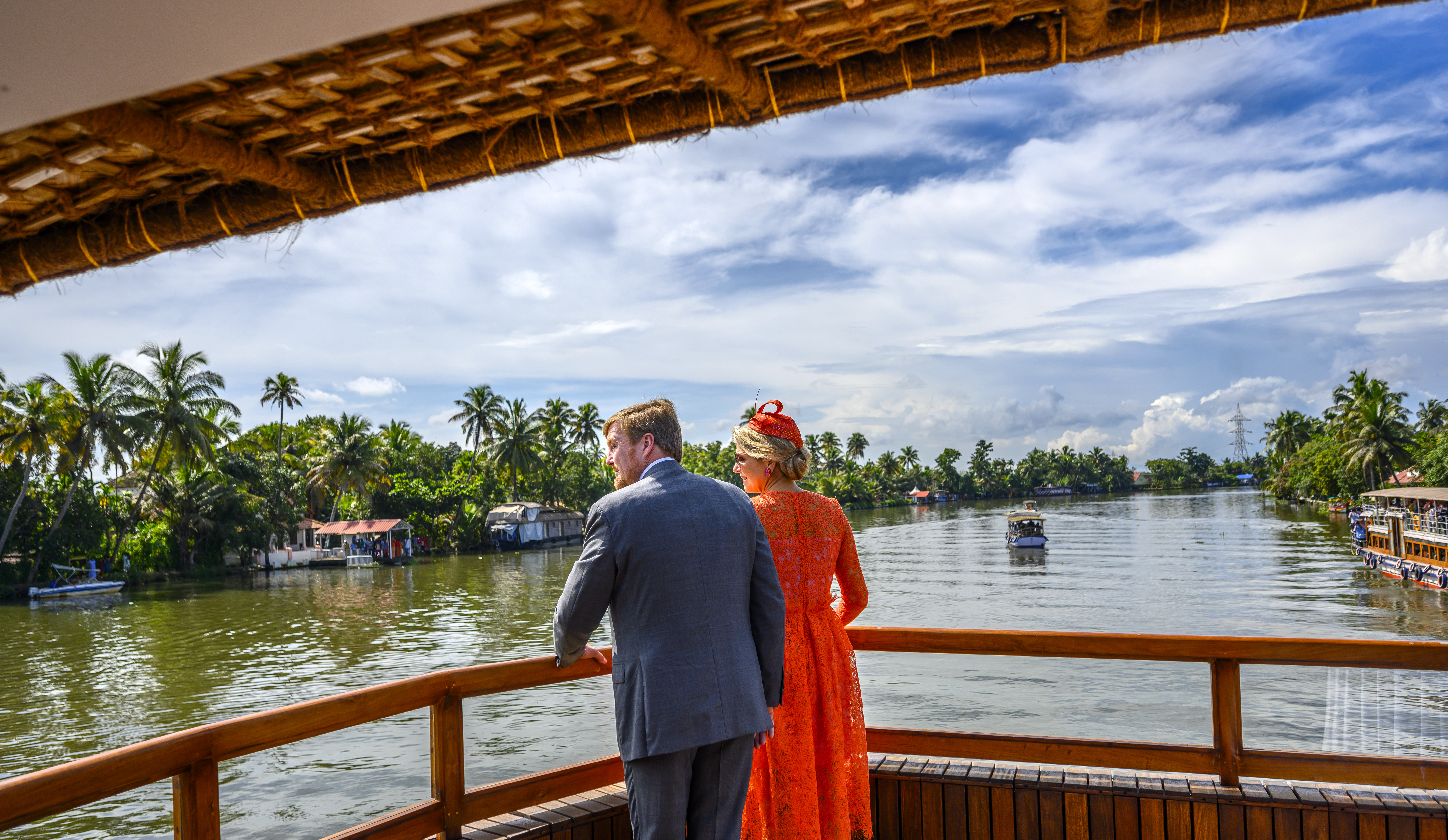 2019-10-18 06:28:44 ALLEPPEY - Koning Willem-Alexander en koningin Maxima maken op de laatste dag van hun staatsbezoek een rondvaart op de zogenoemde ‘backwaters’ rond Alleppey. Het koningspaar brengt een vijfdaags staatsbezoek aan India. ANP ROYAL IMAGES FRANK VAN BEEK