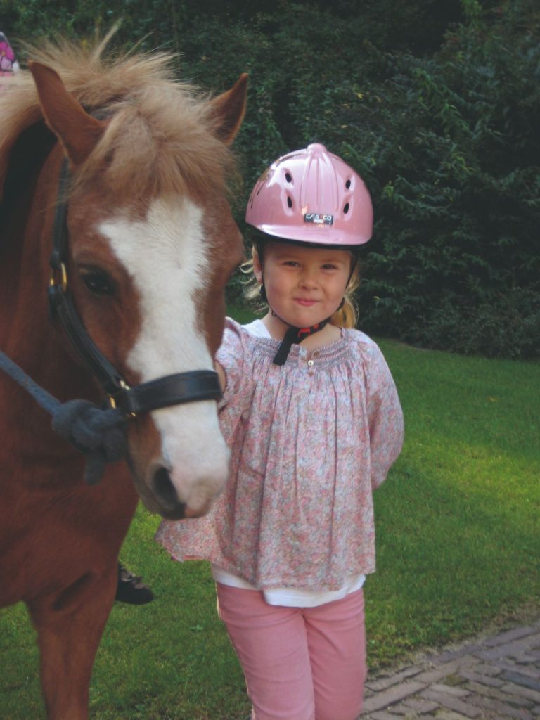 Amalia met pony Fredje, waarover ze vertelt in het boek Amalia