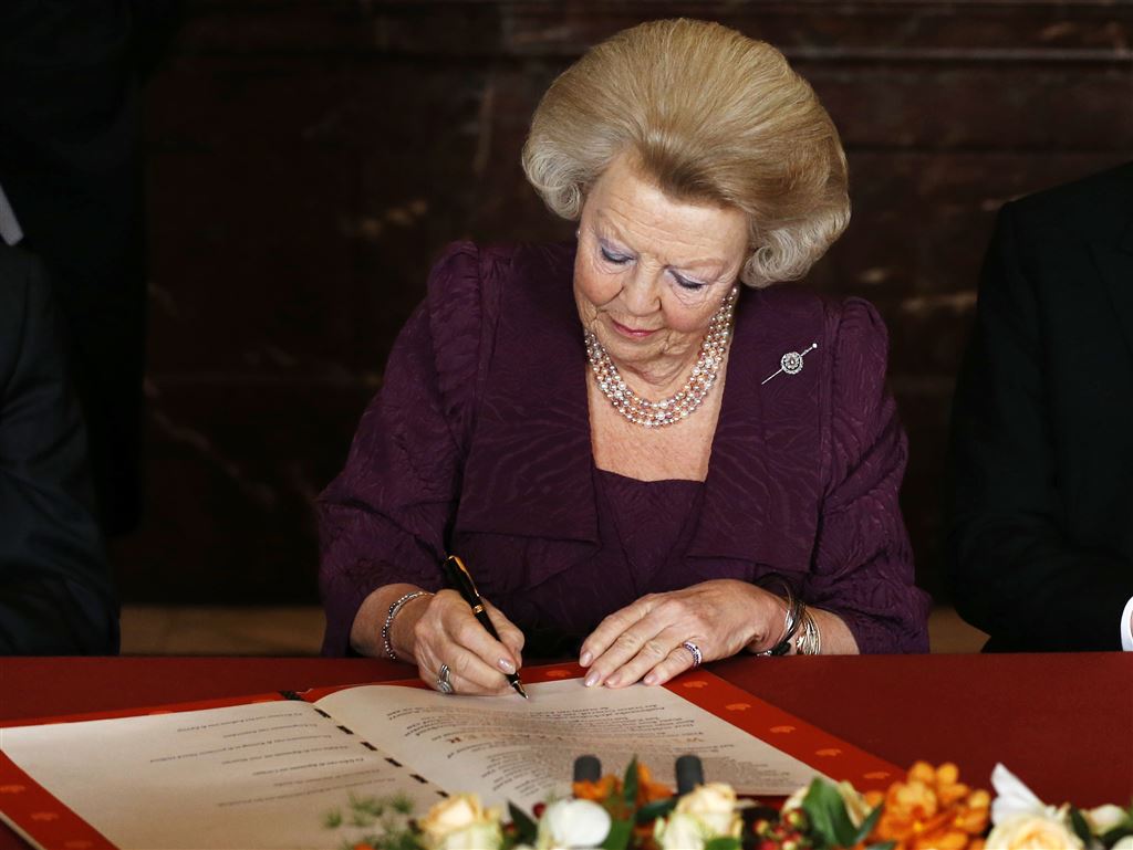 Voor de akte was hele zware inkt nodig, om te voorkomen dat de handtekeningen op het document vergaan. De koninklijke staf kreeg vooraf duidelijke instructies over het gebruik van de pen. Om te voorkomen dat de vulpen op het moment suprême dienst zou weigeren, moesten medewerkers de pen in beweging houden totdat Beatrix haar zwierige handtekening zou zetten.