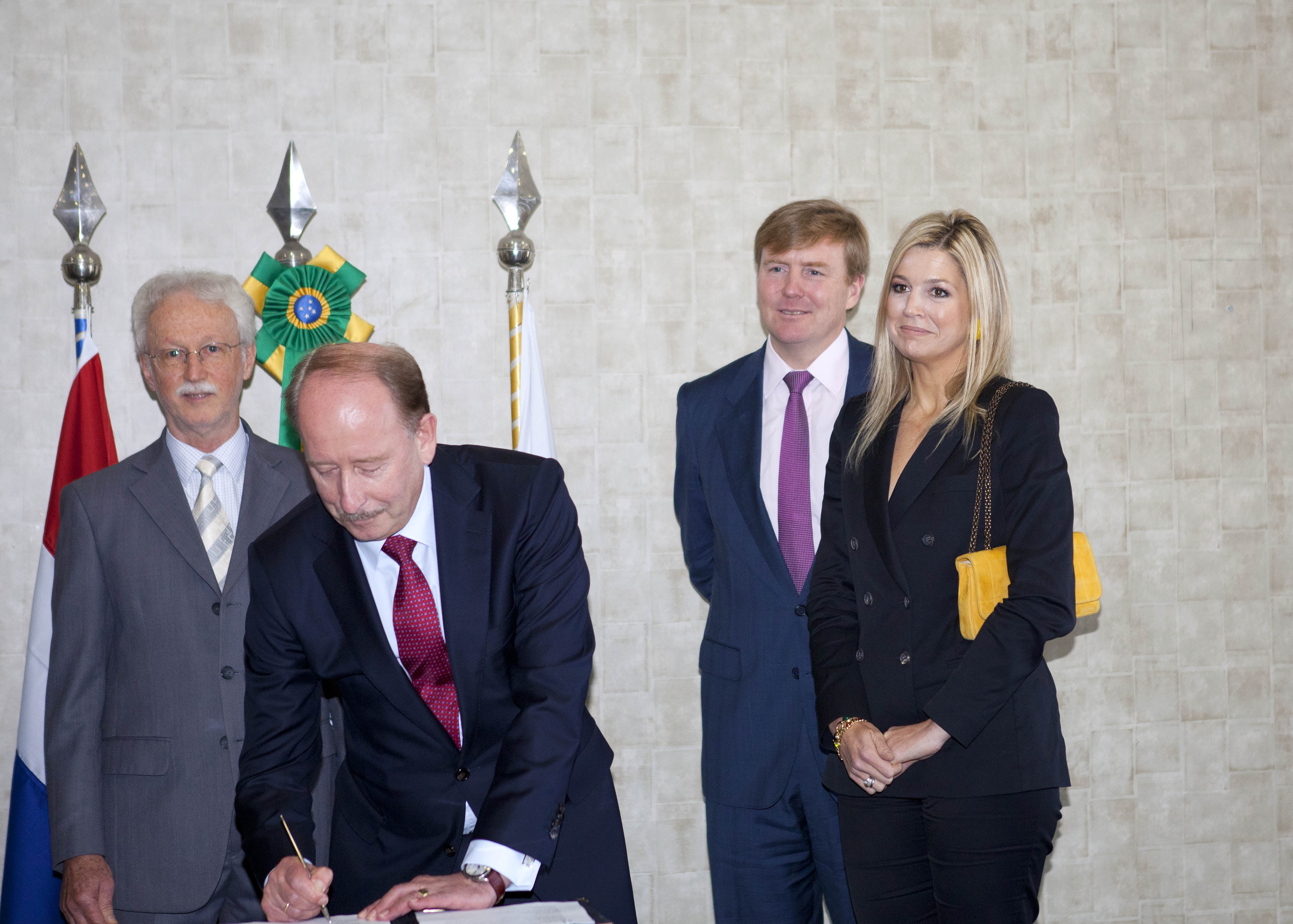 Het bezoek aan Brazilië zit er al weer op! Het bezoek werd gisteren afgesloten met een persgesprek en een prachtig poseermoment bij het strand. Maar dat was niet het enige wat die dag op het programma stond. Eerder die dag bezocht het prinselijk paar een seminar over jachtbouw en een grote, belangrijke oliemaatschappij. Tijdens de laatste dag droeg prinses Máxima twee verschillende broekpakken. ’s Ochtends was zij gekleed in een zwart exemplaar van Stella McCartney, ’s middags in een nude-kleurig exemplaar van NATAN. Voor meer informatie over de inhoud van het programma verwijzen wij u graag naar de nieuwe Vorsten Royale die 28 december in de winkels ligt.