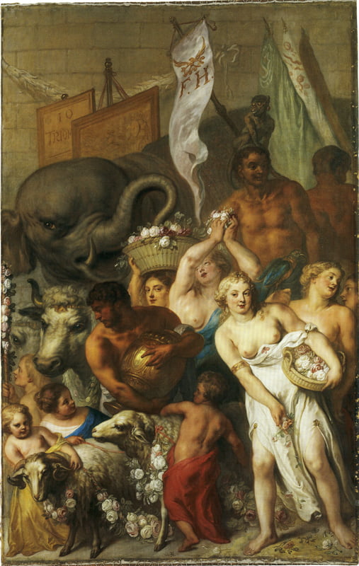 De werken zijn in de periode 1648-1652 onder regie van architect-schilder Jacob van Campen gemaakt door twaalf kunstenaars. Dit gebeurde op initiatief van Amalia van Solms, die met de tientallen doeken, panelen en gewelfschilderingen een eerbetoon wilde vormen aan haar kort daarvoor overleden echtgenoot, stadhouder prins Frederik Hendrik.