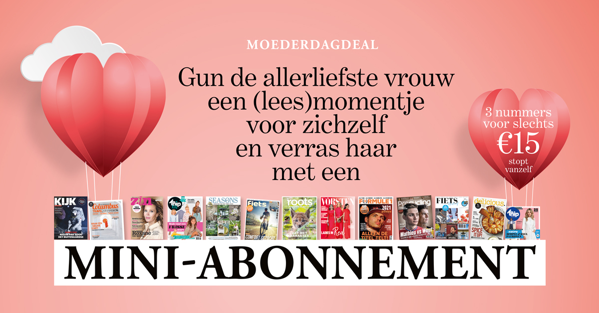Op zondag 9 mei is het Moederdag! Een mooi moment om je moeder, vrouw, dochter, zus of vriendin lekker in het zonnetje te zetten. Gun de allerliefste vrouw een (lees)momentje voor zichzelf en verras haar met een proefabonnement op een titel naar keuze. Van delicious. tot Columbus Travel, van FietsActief tot Vorsten.
