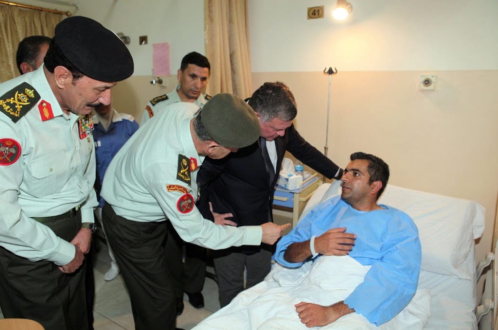 His Majesty King Abdullah II visits victims of the shooting at the police training facility #Jordan pic.twitter.com/JtNZKYn3nZ