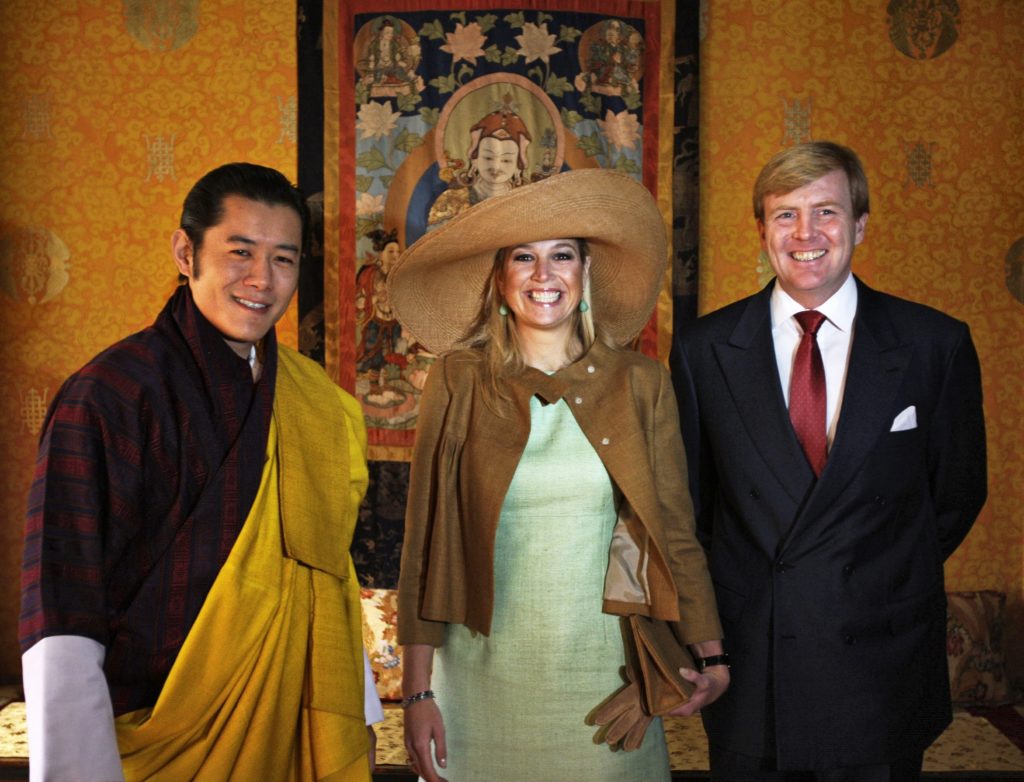 Als nieuwbakken koning nodigt Jigme Khesar al snel collega-royals uit. In zijn eerste jaar op de troon staan prins Willem-Alexander en prinses Máxima op de stoep voor een driedaags bezoek, waarmee Willem-Alexander een wens van zijn vader Claus in vervulling laat gaan. ‘Mijn vader had een grote liefde voor dit land, al heeft hij het helaas nooit kunnen bezoeken. Bij zijn overlijden heeft de toenmalige koning van Bhutan een ceremonie aan mijn vader gewijd. Toen we dat hoorden, wisten we meteen: daar moeten we heen.’ Jigme en Jetsun worden wel eens de William en Catherine van de Himalaya’s genoemd, en in 2016 zijn de échte prins William en zijn vrouw te gast. Datzelfde jaar komen ook de Zweedse koning Carl Gustaf en koningin Silvia langs, voor een staatsbezoek. Eén van de vaste onderdelen op het programma − althans voor de jongere gasten − is boogschieten, dé nationale sport van Bhutan. Ook worden de nodige tempels en kloosters bezocht, wordt er gedineerd in de residentie van het koningspaar en kunnen de Britse gasten zelfs een potje darts spelen. Ook met de Japanse keizerlijke familie zijn de banden warm, wat resulteert in bezoeken over en weer. Staatsbezoeken aan Europa heeft het jonge koningspaar nog niet gebracht. Het wachten is op een uitnodiging van Willem-Alexander aan Jigme Khesar en Jetsun Pema, zodra het weer kan, zodat Jetsun Pema met eigen ogen kan zien waar die Queen of Bhutan-tulp nou eigenlijk vandaan komt.