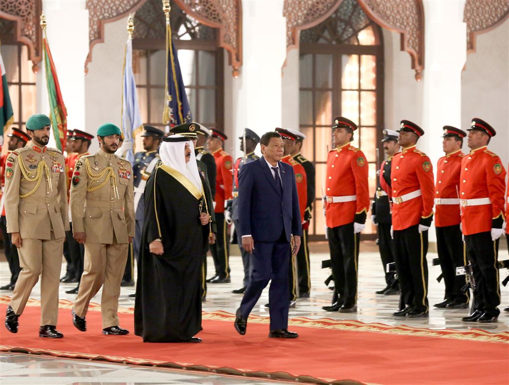 Koning Hamad was donderdag bij zijn gesprek met Duterte in het Al-Sakhir paleis vol lof over de economische vooruitgang in de Filipijnen. Hij zei te hopen dat de samenwerking kon worden uitgebreid. Bahrein is voor het vullen van veel vacatures afhankelijk van gastarbeiders uit de Filipijnen, dat op zijn beurt afhankelijk is van het geld dat de miljoenen gastarbeiders naar huis sturen.