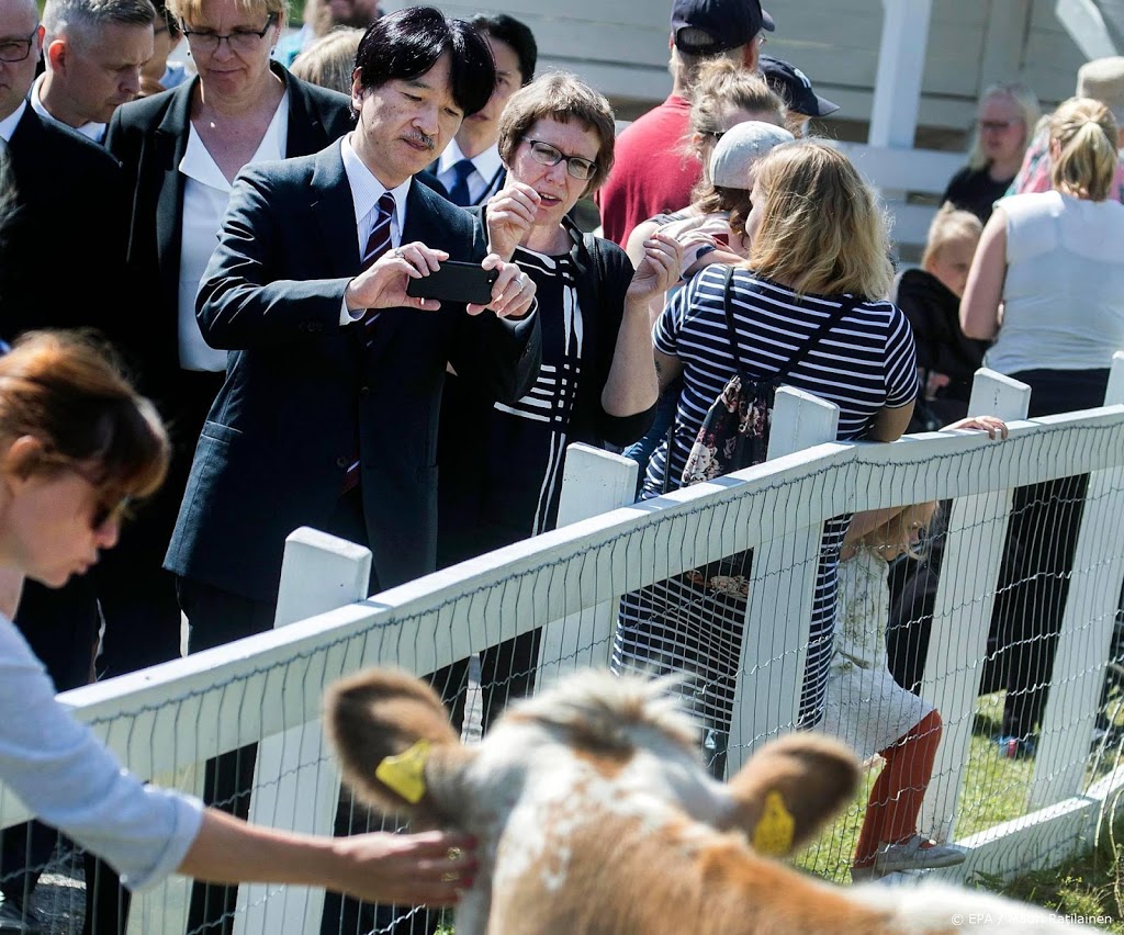 De Japanse kroonprins Akishino keek donderdag zijn ogen uit tijdens een bezoek aan een boerderij in Finland. Met zijn eigen smartphone en fotocamera maakte hij foto’s van de koeien en de kippen.