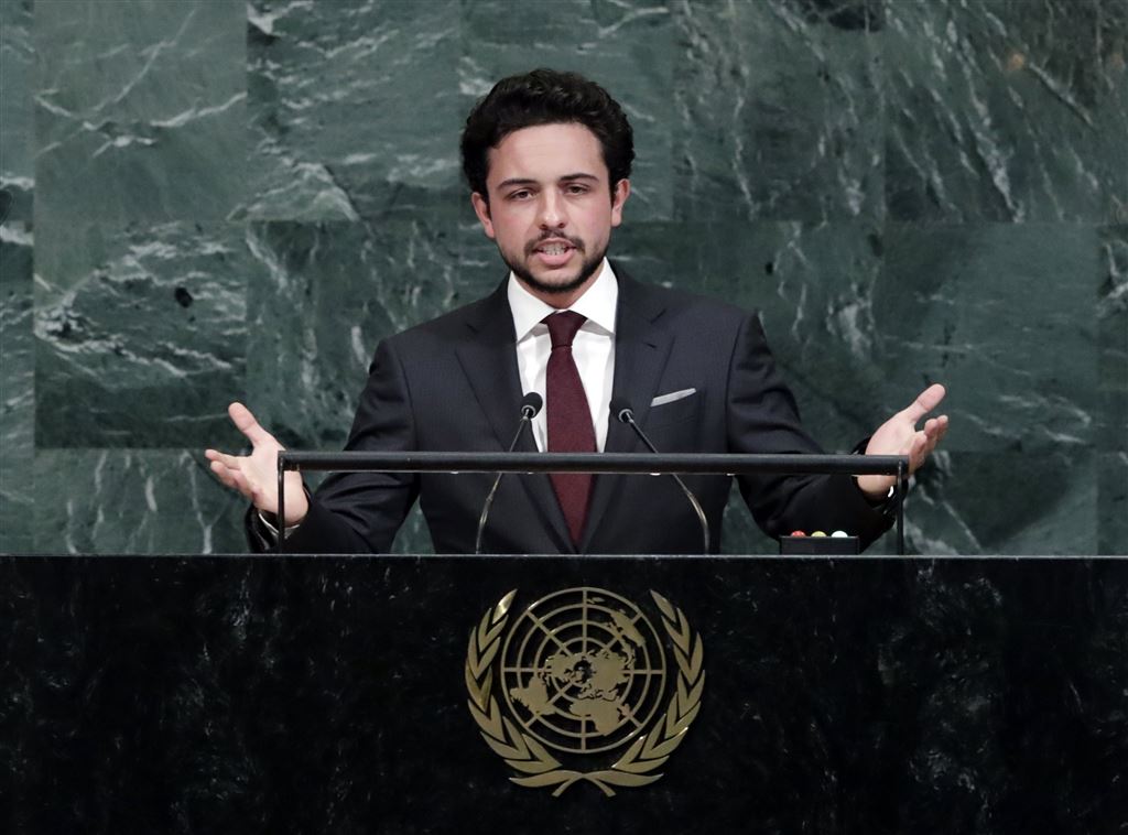 De Jordaanse kroonprins Hoessein heeft donderdag namens zijn vader, zijn generatiegenoten en het Jordaanse volk de Algemene Vergadering van de Verenigde Naties toegesproken. Hoessein (23) kreeg na zijn bevlogen, soms zeer persoonlijke en goed voorgedragen betoog een warm applaus uit de overigens slecht bezette vergaderzaal.