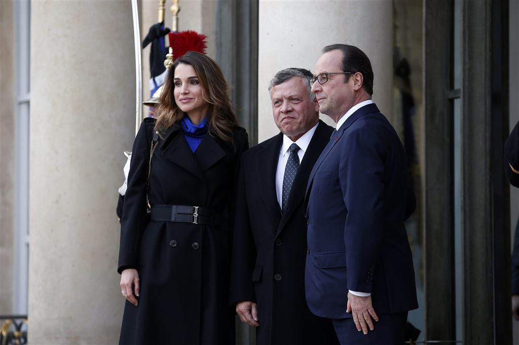 PARIJS – Koning Abdullah II van Jordanië en zijn vrouw koningin Rania liepen zondagmiddag mee in de Mars voor de Republiek in Parijs.