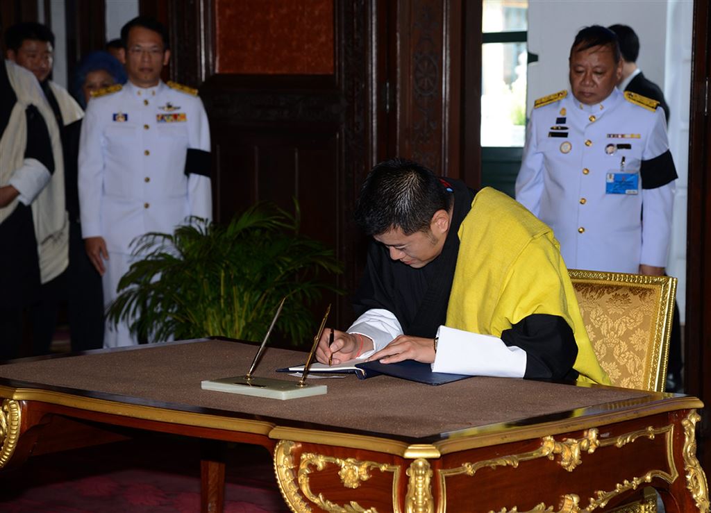 De drakenkoning en zijn vrouw Jetsun arriveerden zaterdag in Thailand. Ook in Bhutan wordt gerouwd om de dood van Bhumibol, die ruim zeventig jaar op de troon zat. Koning Jigme Khesar kondigde vrijdag een dag van nationale rouw af. Net als in Thailand gingen de vlaggen in Bhutan halfstok en bleven scholen, kantoren en andere openbare gebouwen gesloten zodat de bevolking voor Bhumibol kon bidden in de tempels.