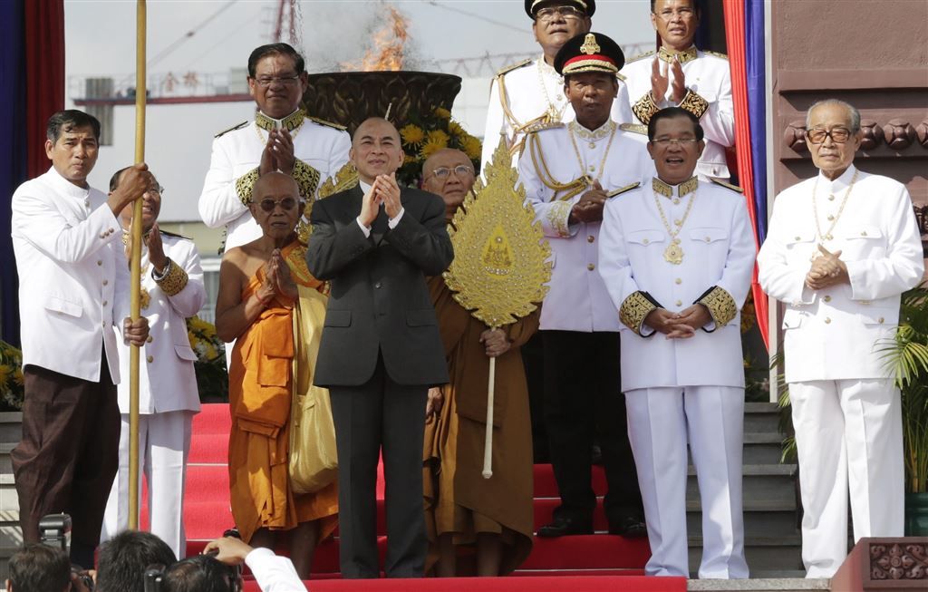 Voor het oog van zo’n duizend man publiek ontstak Sihamoni de fakkel in het onafhankelijksheidsmonument. Hij werd daarbij geflankeerd door de Cambodjaanse premier Hun Sen. Het vuur brandt drie dagen totdat de koning terugkeert om het weer te doven.