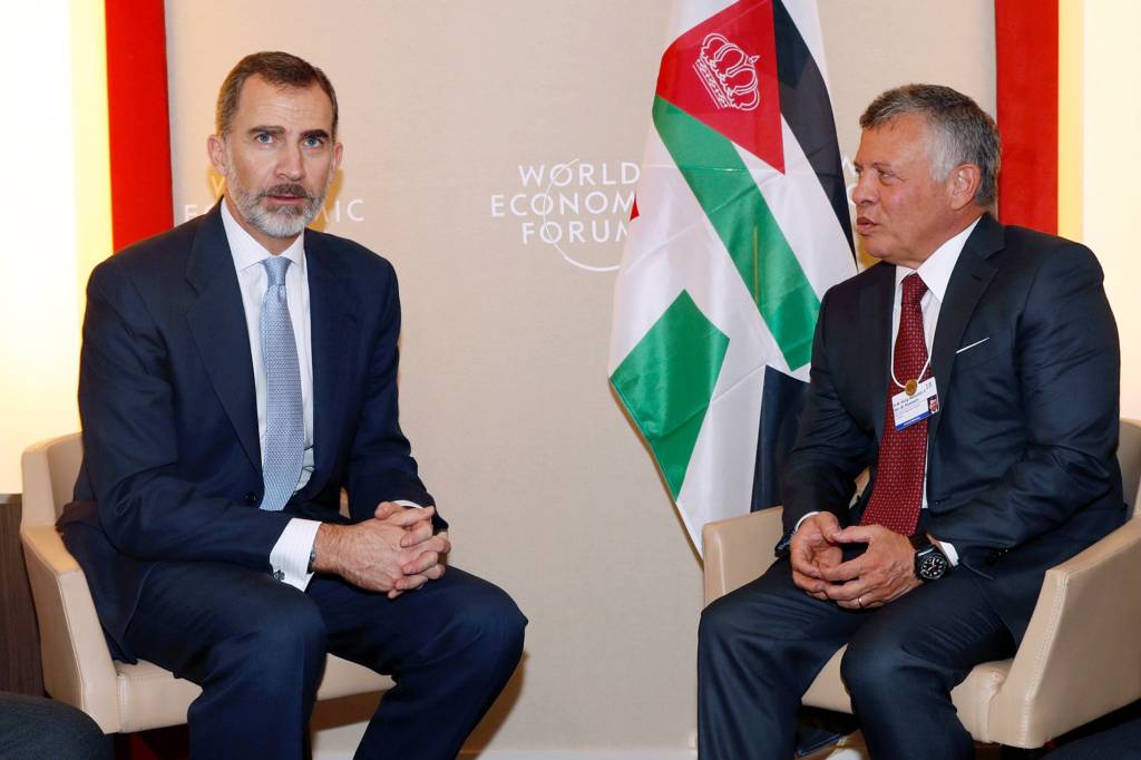 Abdullah had woensdag op de tweede dag van het WEF onder meer een bespreking met de premier van Koerdistan. Koningin Rania schoof aan bij de gesprekken met de premier van Libanon, Saad Hariri. Daarna kwamen koning Felipe van Spanje en minister-president Edi Rama van Albanië langs.