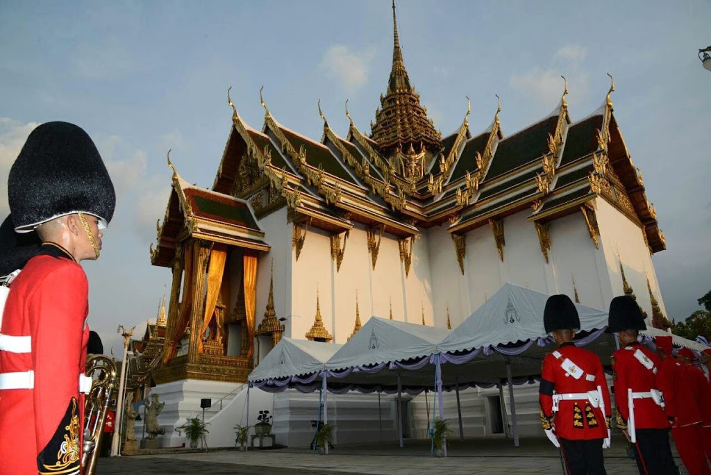 Koning Jigme Khesar en koningin Jetsun van Bhutan zijn zaterdag in Thailand waar ze de laatste eer betuigen aan de overleden koning Bhumibol Adulyadej.