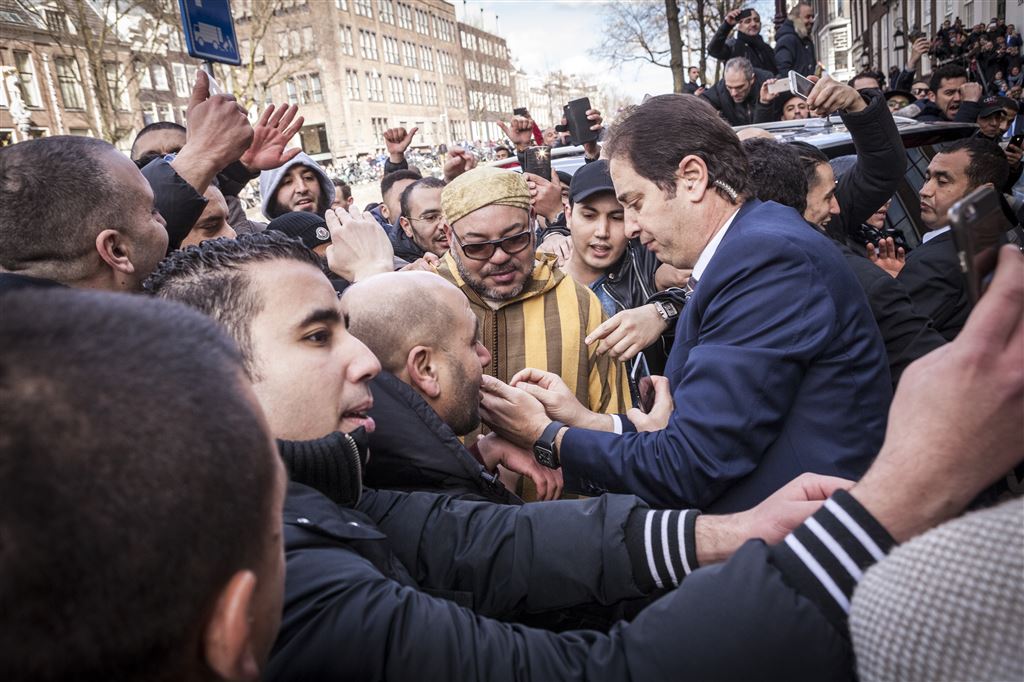 Voor gewoon verkeer was er op de Herengracht enige tijd geen doorkomen aan. Het was voor het hotel nog drukker dan in voorgaande dagen. Honderden Marokkaanse Nederlanders wilden de koning voor zijn vertrek nog zien, de hand schudden of met hem op de foto.