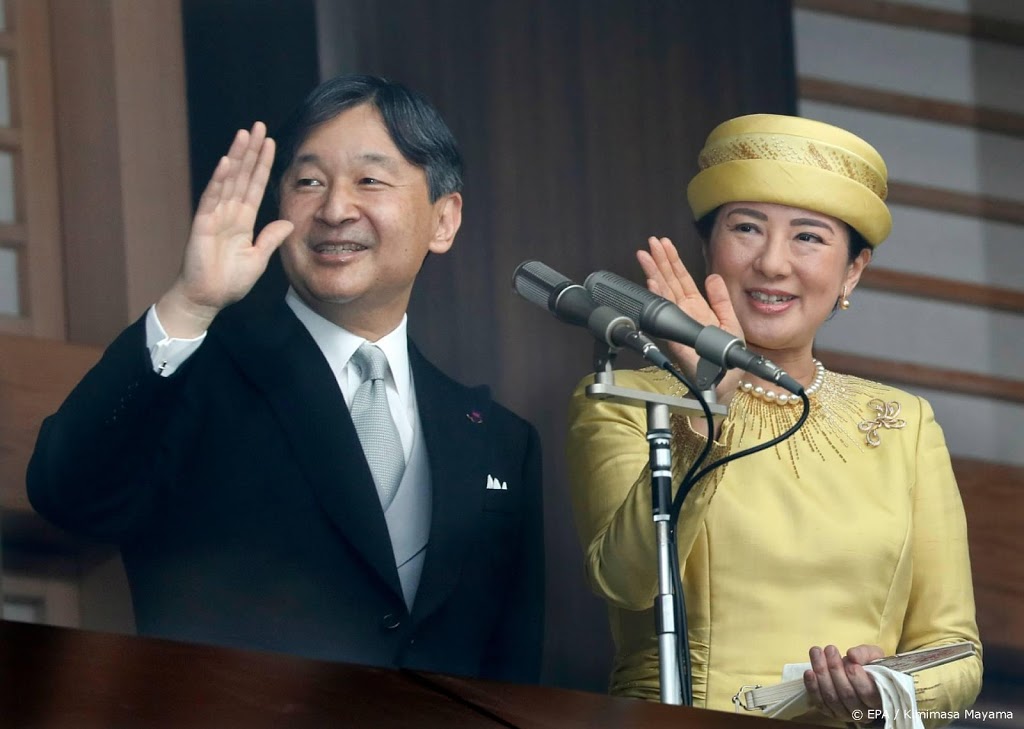 Pas nadat hij zijn woorden had gesproken, zwaaide keizerin Masako ook naar de menigte voor de hal. Dochter prinses Aiko (17) en het zoontje van de nieuwe kroonprins Akishino, prins Hisahito (12), verschenen niet voor het publiek.