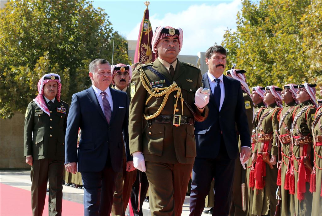 Koning Abdullah van Jordanië heeft maandag de Hongaarse president János Áder ontvangen met een welkomstceremonie in Amman. Samen inspecteerden de twee staatshoofden de erewacht.