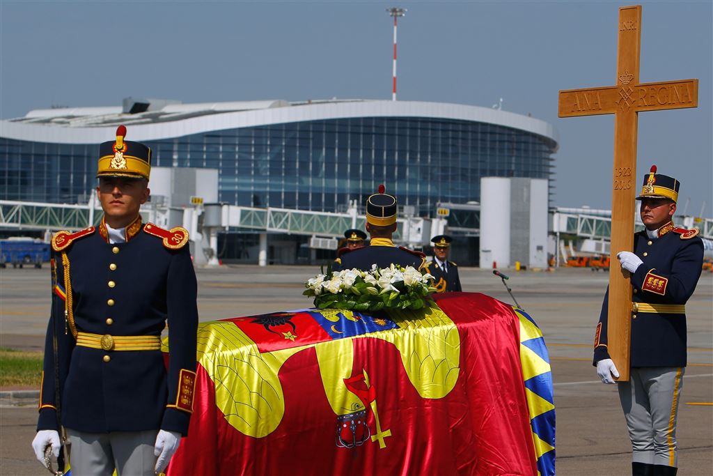 Het presidentieel paar werd daarna verwelkomd door prinses Margareta en haar man prins Radu, alvorens zij gezamenlijk het kasteel binnengingen waar de kist met het stoffelijk overschot van Ana sinds dinsdag stond opgesteld.