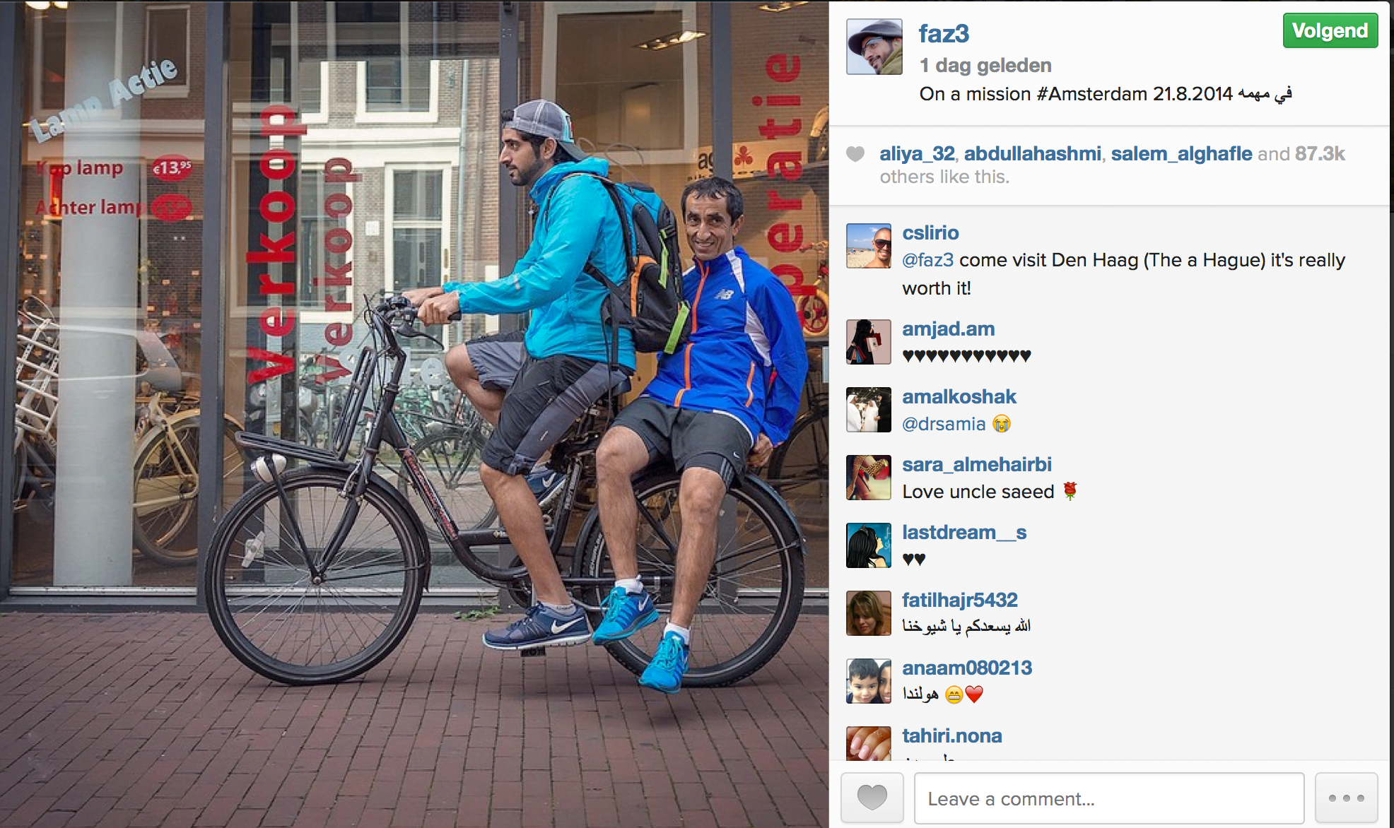 AMSTERDAM – Niemand minder dan de kroonprins van Dubai is momenteel op fietsvakantie in Nederland. Dit is te zien op foto’s die kroonprins Hamdan van Dubai op Instagram plaatste.