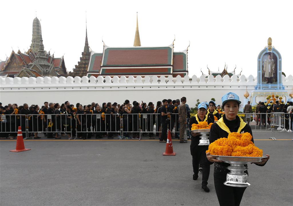 Op straat, in winkelcentra en kantoren gaven de vaak in zwarte kleding geklede Thai gehoor aan de oproep. In de Dusit Maha Prasart-troonzaal van het Grand Palace leidde koning Vajiralongkorn over een koninklijke herdenkingsplechtigheid voor zijn overleden vader. In de troonzaal staat nog steeds de urn met de stoffelijke resten van de koning die pas over dertien dagen met veel ceremonieel wordt gecremeerd.