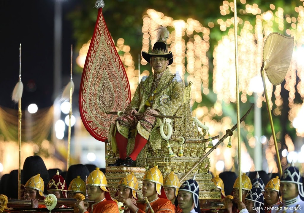 De Thaise koning heeft zondag een kleine zeven uur nodig gehad voor de koninklijke processie door de oude wijk van Bangkok, rond het Grand Palace. De tocht, waaraan meer dan duizend soldaten deelnamen, was zeven kilometer lang. De koning zat op een op een draagstoel geplaatste troon, die door militairen werd gedragen.