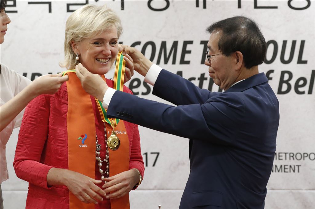 De Belgische prinses Astrid is maandag ereburger van Seoul geworden. De zus van koning Filip kreeg de eretitel en het daarbij horende certificaat uit handen van Park Won-soon, de burgemeester van de Zuid-Koreaanse stad. Tijdens de bijeenkomst maandag spraken de twee af om Brussel en Seoul vaker met elkaar te laten samenwerken.