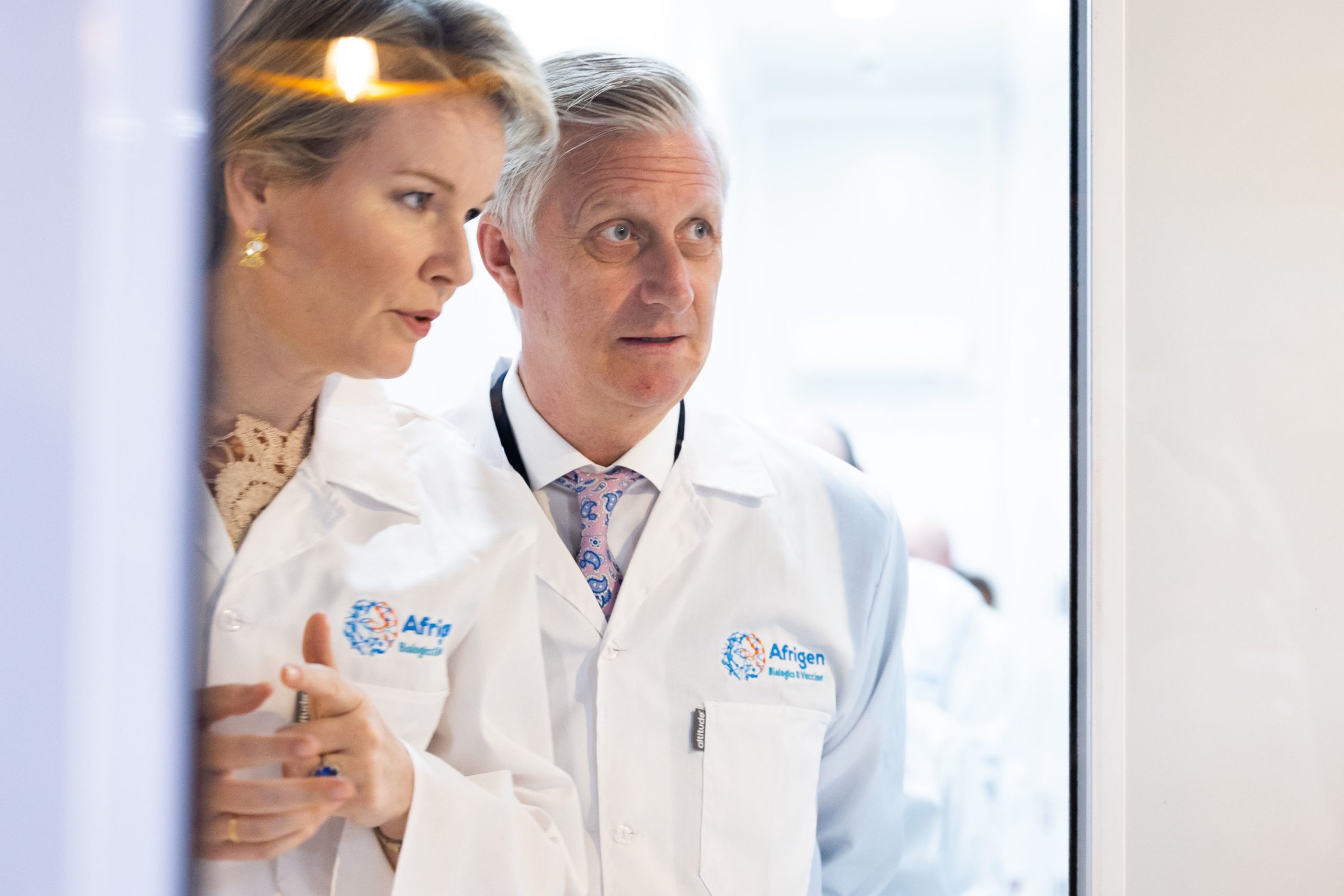 De Belgische koning Filip en zijn vrouw Mathilde hebben Afrigen Biologics Vaccines in Kaapstad bezocht tijdens hun staatsbezoek aan Zuid-Afrika. Op beelden is te zien dat het paar, gehuld in labjassen, meer te horen krijgt over de vaccins die hier worden ontwikkeld.
