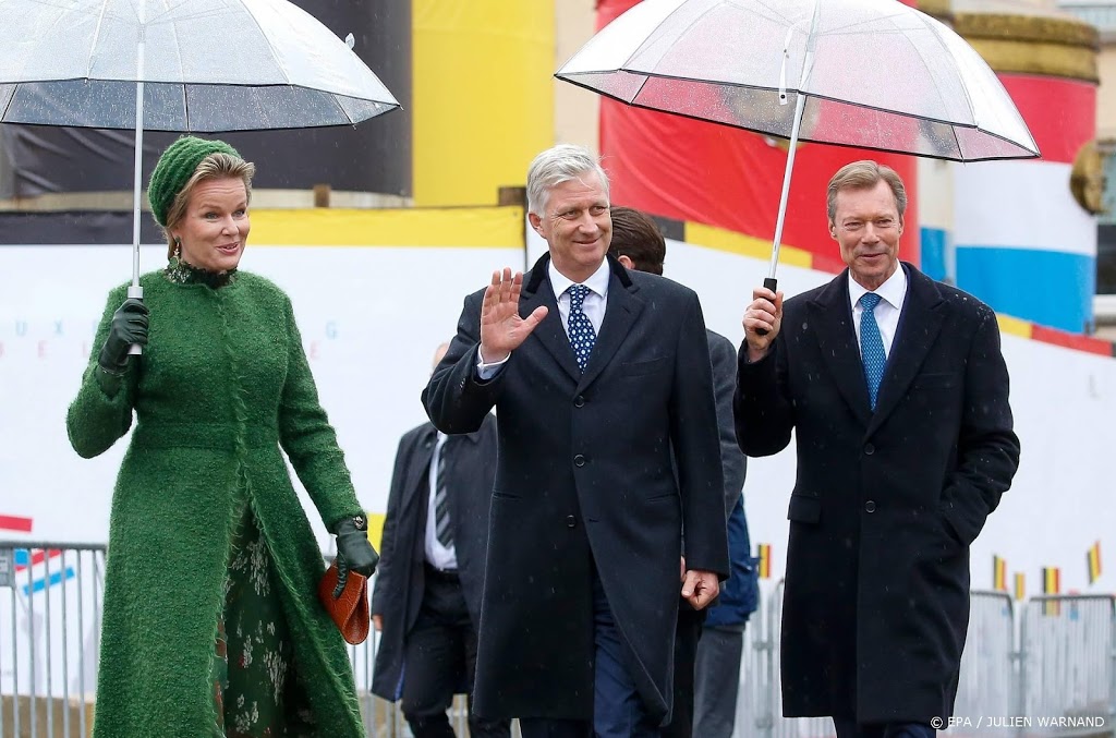 Koning Filip en koningin Mathilde van België troffen het dinsdag in Luxemburg niet met het weer. Op de eerste dag van hun staatsbezoek aan de oosterburen regende het af en toe pijpenstelen. Gewapend met paraplu’s bleek dat echter geen probleem en kon het hele programma worden afgewerkt.