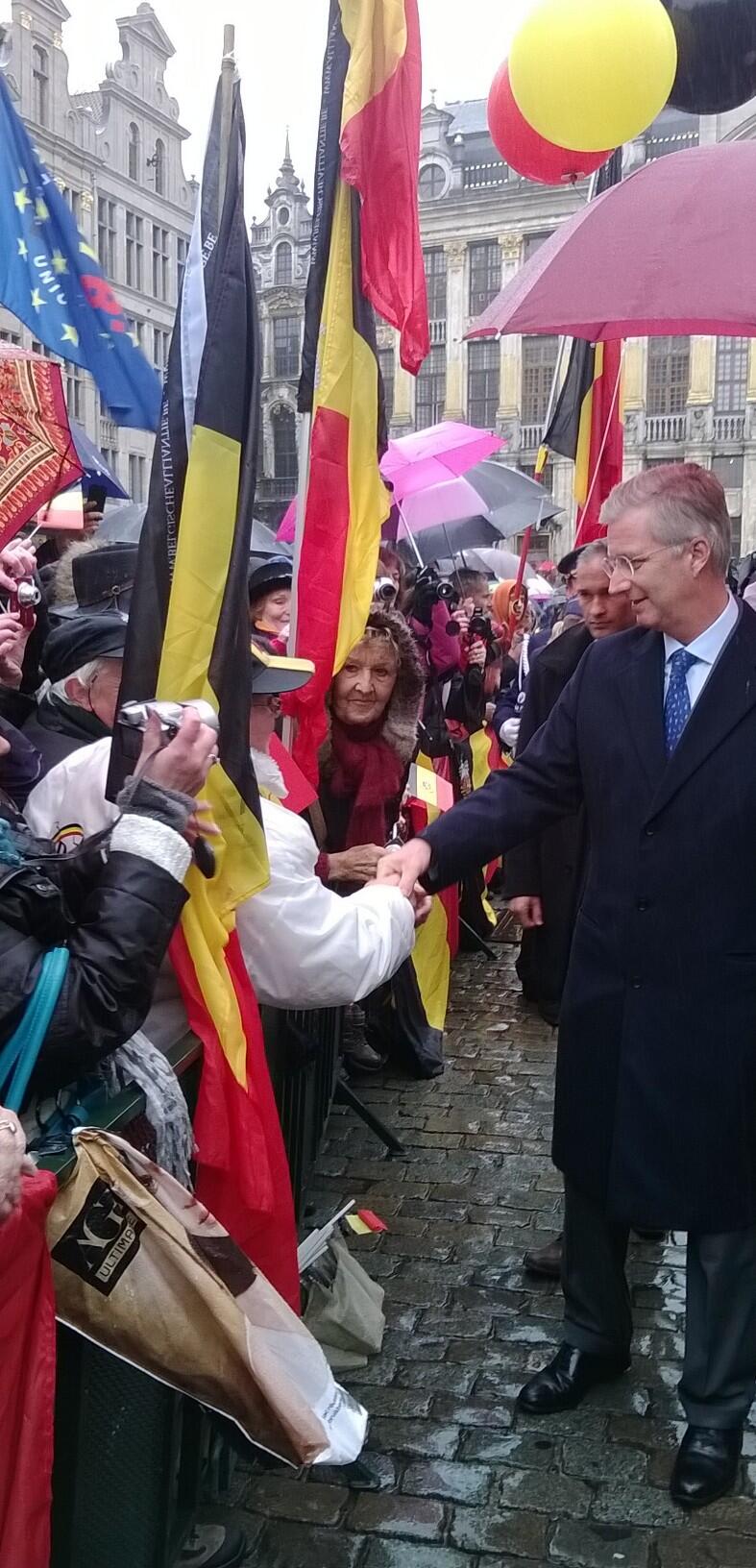 Koning Filip schudt handen na afloop van de Blijde Intrede. Foto @MonarchieBe