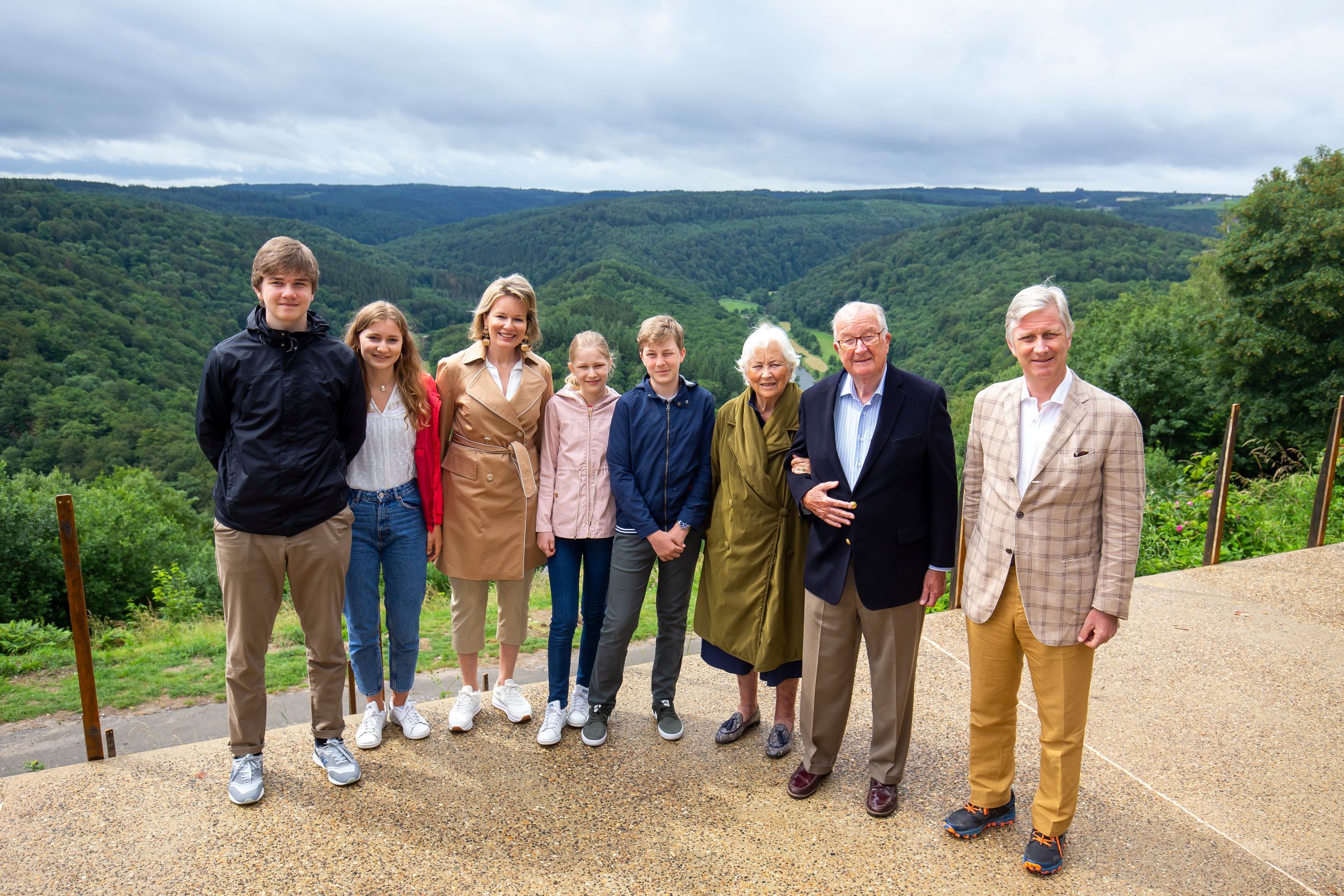 De Belgische royals maakten een wandeling door de natuur. Ze wandelden vanaf het kijkpunt op de Tombeau du Géant (het graf van de reus) tot aan de oevers van de Semois.