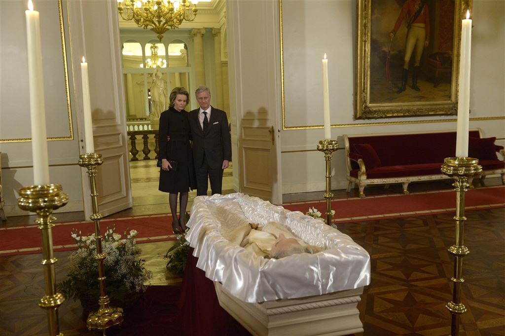 BRUSSEL – De Belgische koning Filip en zijn vrouw koningin Mathilde hebben dinsdag hun laatste eer bewezen aan de overleden koningin Fabiola. Dat deed het koningspaar in het koninklijk paleis in Brussel, waar haar lichaam ligt opgebaard.