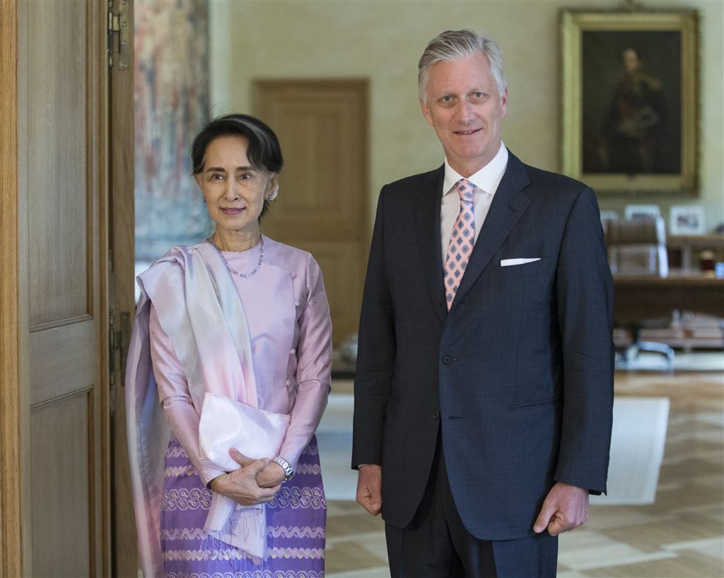 De Belgische koning Filip heeft dinsdag in het Koninklijk Paleis in Brussel een ontmoeting gehad met Aung San Suu Kyi, ‘staatsraad’ en minister van Buitenlandse Zaken van Myanmar. Later had Aung San Suu Kyi ook een onderhoud Donald Tusk, voorzitter van de Europese Raad.