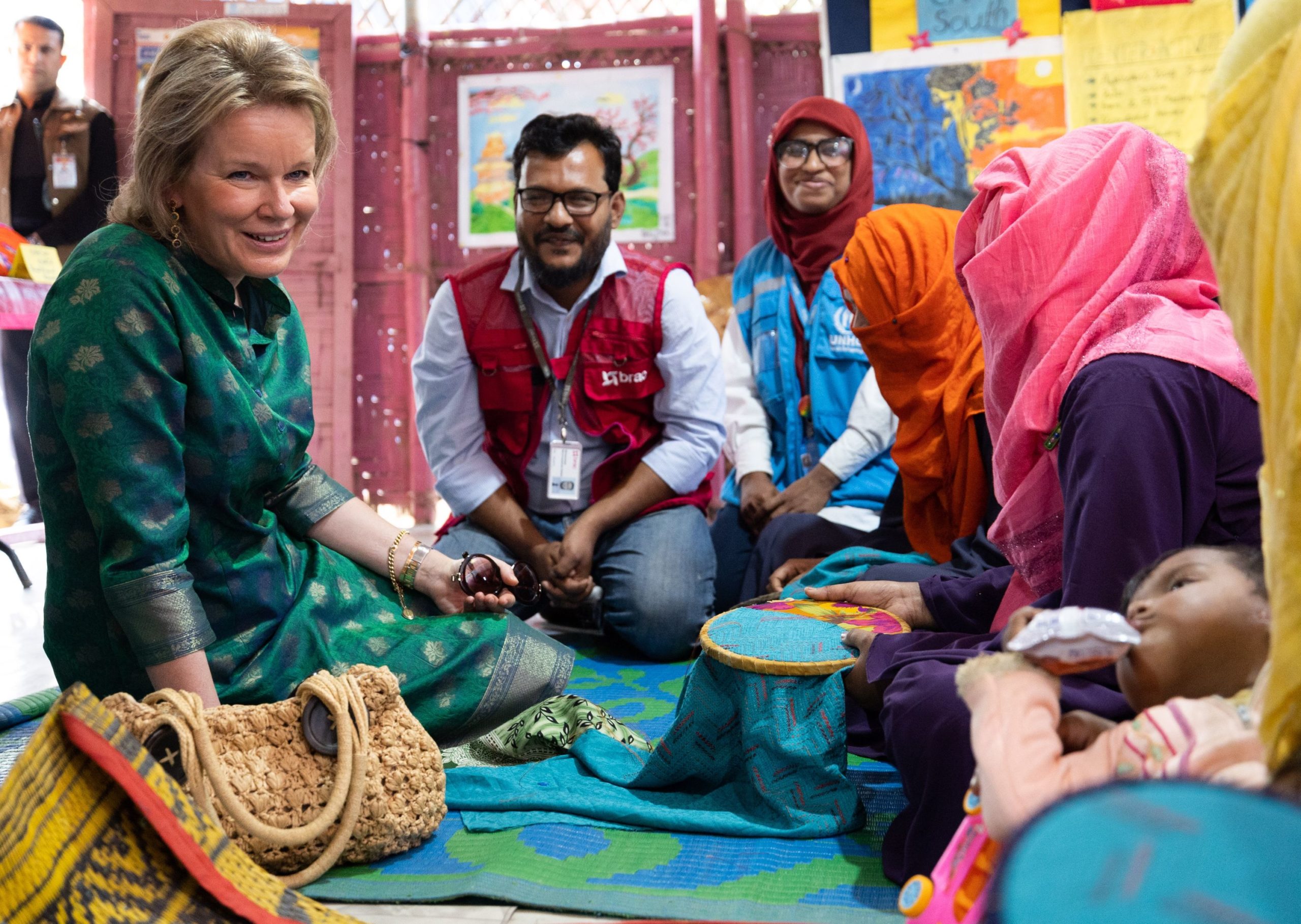 Koningin Mathilde van België heeft dinsdag een bezoek gebracht aan Kutupalong waar het grootste vluchtelingenkamp ter wereld is gevestigd. Het paleis deelt online foto’s van de tweede dag van het bezoek aan Bangladesh.