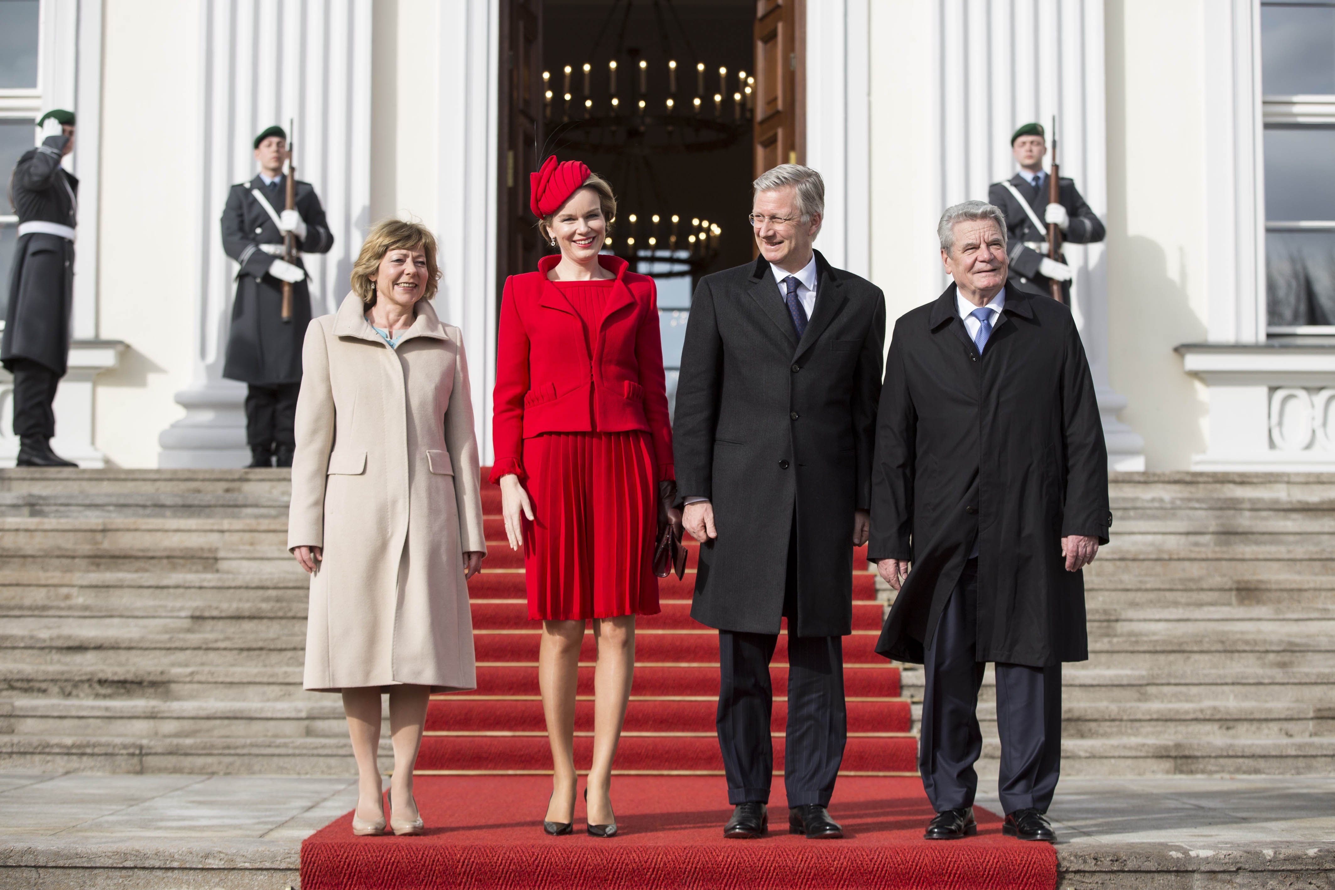 U las het vandaag al eerder op onze website: koningin Mathilde krijgt veel complimenten voor haar kledingkeuzes tijdens de buitenlandse kennismakingsbezoeken. Zo nam ze op elegante wijze de aftrap in een een fuchsia japon van Edouard Vermeulen (bezoek Nederland) en koos vervolgens voor creaties van Ann Demeulemeester (Luxemburg), Dior (Frankrijk), Pierre Gauthier (Duitsland) en Armani (Italië). Uiteraard zijn we op de redactie van Vorsten weer erg benieuwd welke outfit uw favoriet is. Stem op de poll en laat het ons weten via een reactie!