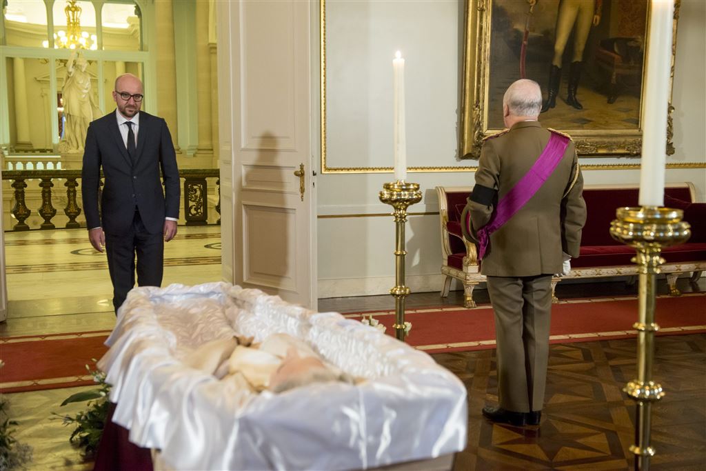 BRUSSEL – De Belgische premier Charles Michel en zijn vicepremiers Kris Peeters, Jan Jambon, Didier Reynders en Alexander De Croo hebben woensdag een laatste groet gebracht aan koningin Fabiola, die overleed op vrijdag 5 december.