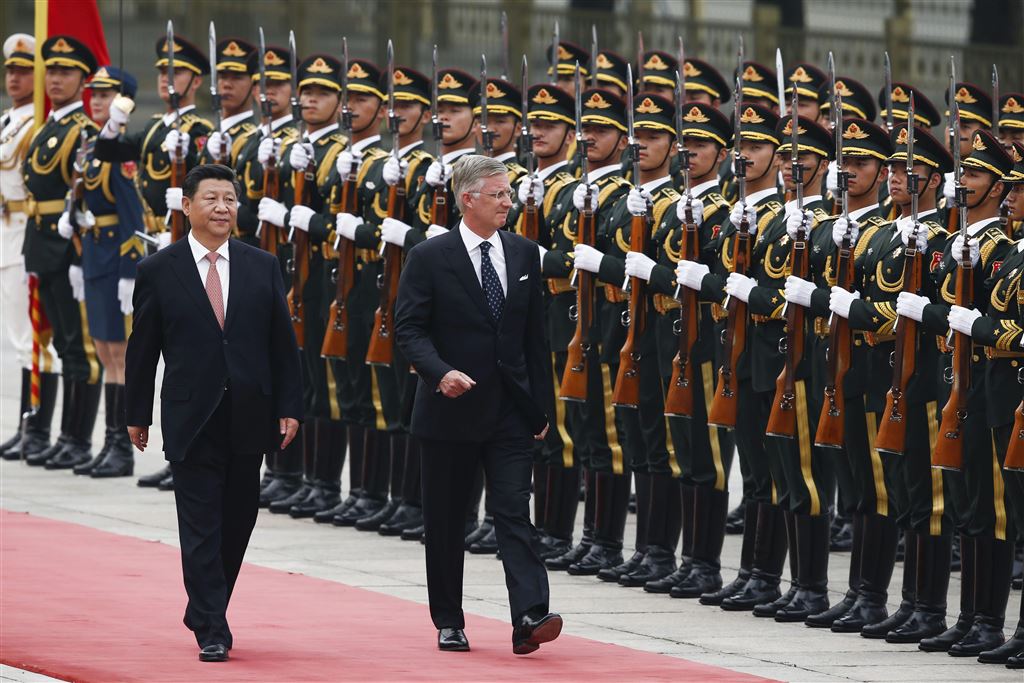 PEKING – Op de derde dag van het staatsbezoek van koning Filip en koningin Mathilde aan China is het Belgische koningspaar dinsdag ontvangen door de Chinese president Xi Jinping en zijn echtgenote Peng Liyuan. Op het Plein van de Hemelse Vrede in Peking inspecteerde de Belgische koning met Jinping de erewacht.