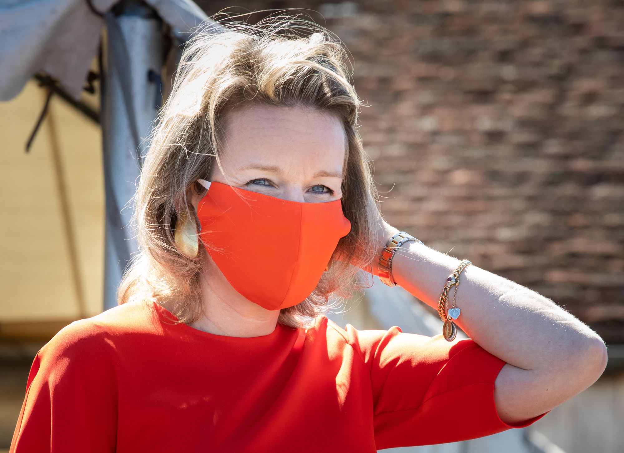 Het mondkapje (of mondmasker in België) is nog wel even een blijvertje, dus waarom zou het dan geen onderdeel van een outfit worden? Mathilde stemt regelmatig haar mondkapje af op haar kleding, zoals ze dat ook met haar handschoenen of hoed doet. En dan komt het mooi uit dat favoriet couturier Edoard Vermeulen nog wel een stukje stof overheeft voor een perfect afgestemd exemplaar!