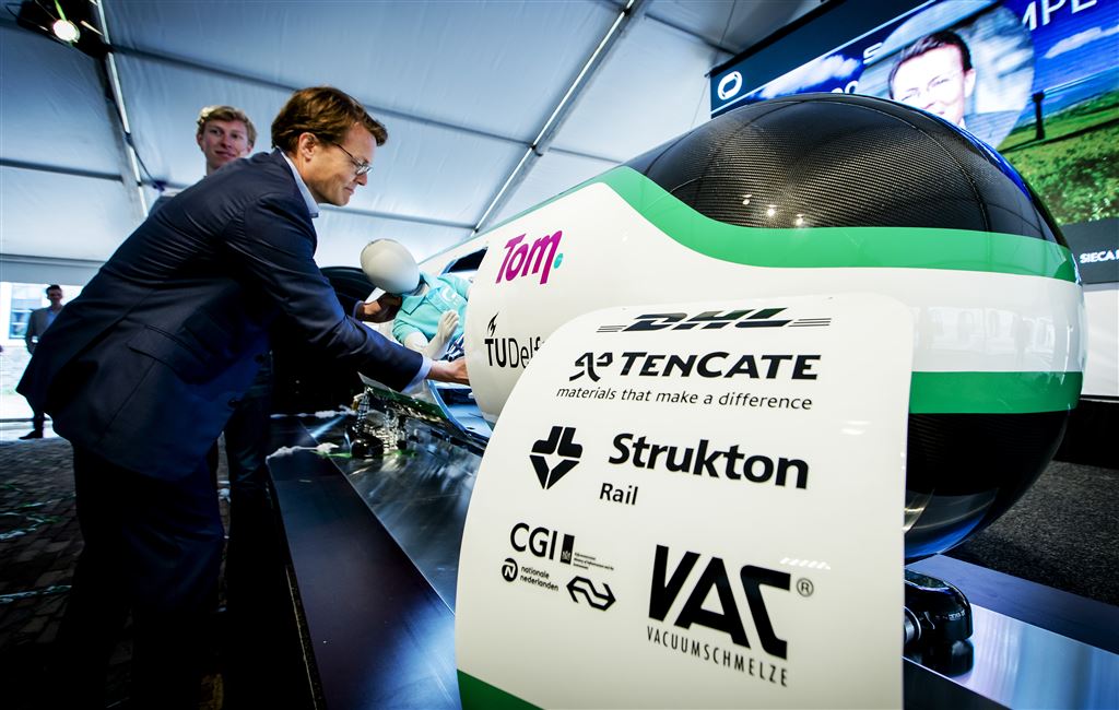 Minister Henk Kamp (Economische Zaken) onthulde de capsule, waarna Constantijn een dummy erin legde. Kamp: “Nederland heeft de ambitie om met een sterke kenniseconomie tot de slimste landen van de wereld te blijven behoren. De door TU Delft bedachte Hyperloop is een voorbeeld van een innovatieve oplossing op wereldniveau die de toekomstige economische groei en concurrentiekracht van Nederland kan versterken door bij te dragen aan sneller, duurzamer en efficiënter transport.”