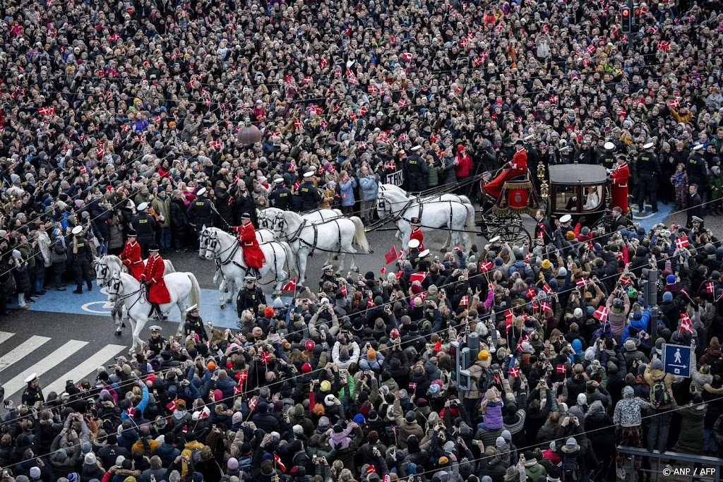 Bijna 300.000 mensen waren zondag in Kopenhagen op de been om iets op te vangen van de Deense troonswisseling. Verreweg de meesten hadden zich verzameld op het plein voor paleis Christiansborg, meldt het Deense persbureau Ritzau op basis van mobiele gegevens van het Deense telecombedrijf 3.