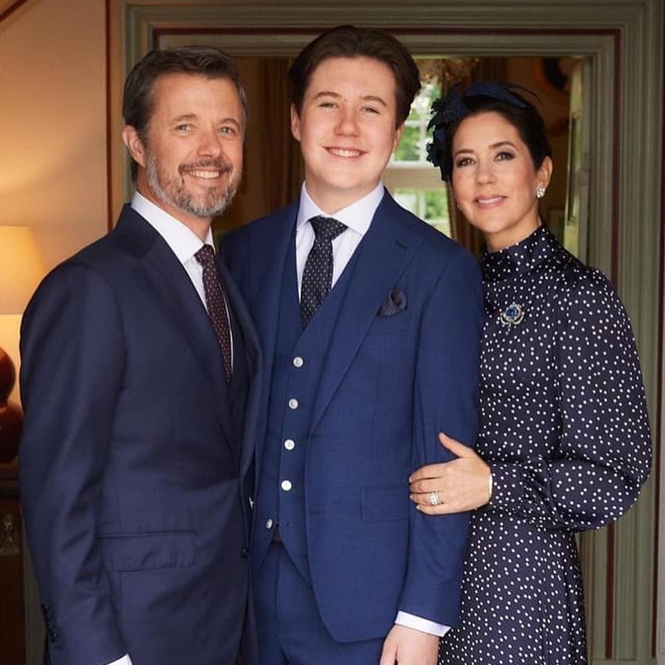 Op de foto staan koningin Margrethe, Christian zelf, zijn ouders kroonprins Frederik en Mary, Christians zusjes Isabella en Josephine en zijn broertje Vincent. Prinses Marie en prins Joachim, de tante en oom van Christian, en hun kinderen kunnen vanwege de maatregelen niet bij de plechtigheid zijn.