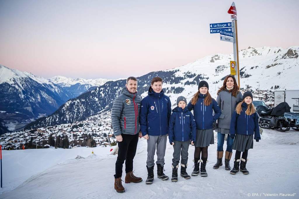 De Deense kroonprins Frederik heeft maandagmorgen in het Zwitserse Verbier de tijd genomen om met zijn gezin te poseren voor de Deense en internationale media. Dat gebeurde in alle vroegte want de vier kinderen Christian (14), Isabella (12) en de tweeling Vincent en Josephine (8) gaan maandag voor het eerst naar een internationale school in Zwitserland.