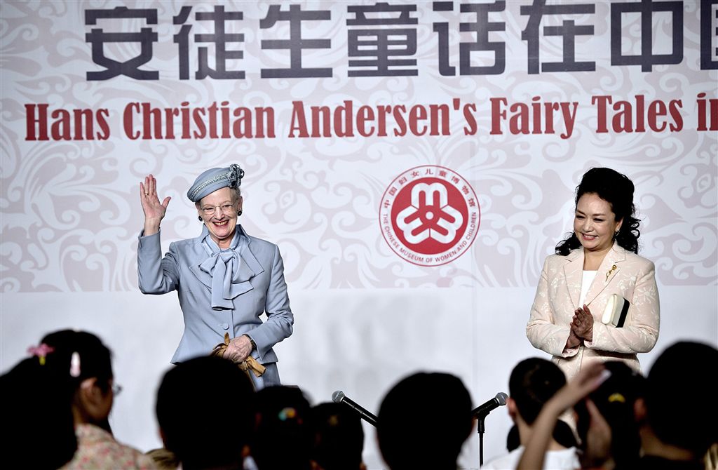 PEKING – De Deense koningin Margrethe II heeft vrijdag op de tweede dag van haar staatsbezoek aan China samen met presidentsvrouw Peng Liyuan sprookjes voorgelezen aan Deense en Chinese kinderen. Beiden kozen daarvoor het verhaal van het lelijke eendje van de Deense sprookjesverteller Hans Christian Andersen. Margrethe las voor in het Deens, Peng in het Chinees.
