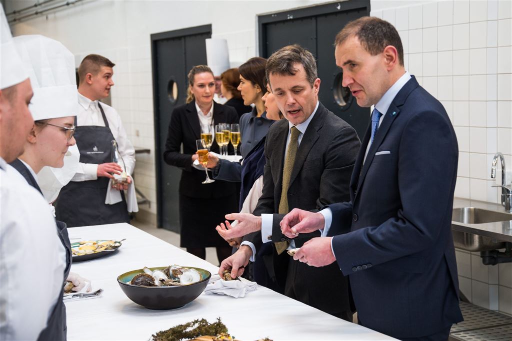 Frederik en zijn vrouw kroonprinses Mary brachten met de IJslandse president Gudni Jóhannesson en diens echtgenote Eliza Reid een bezoek aan de hotelschool. In de keuken ontmoetten de vier studenten, die hen vertelden over de opleiding. Op het menu voor de lunch stonden naast paddenstoelen ook oesters.