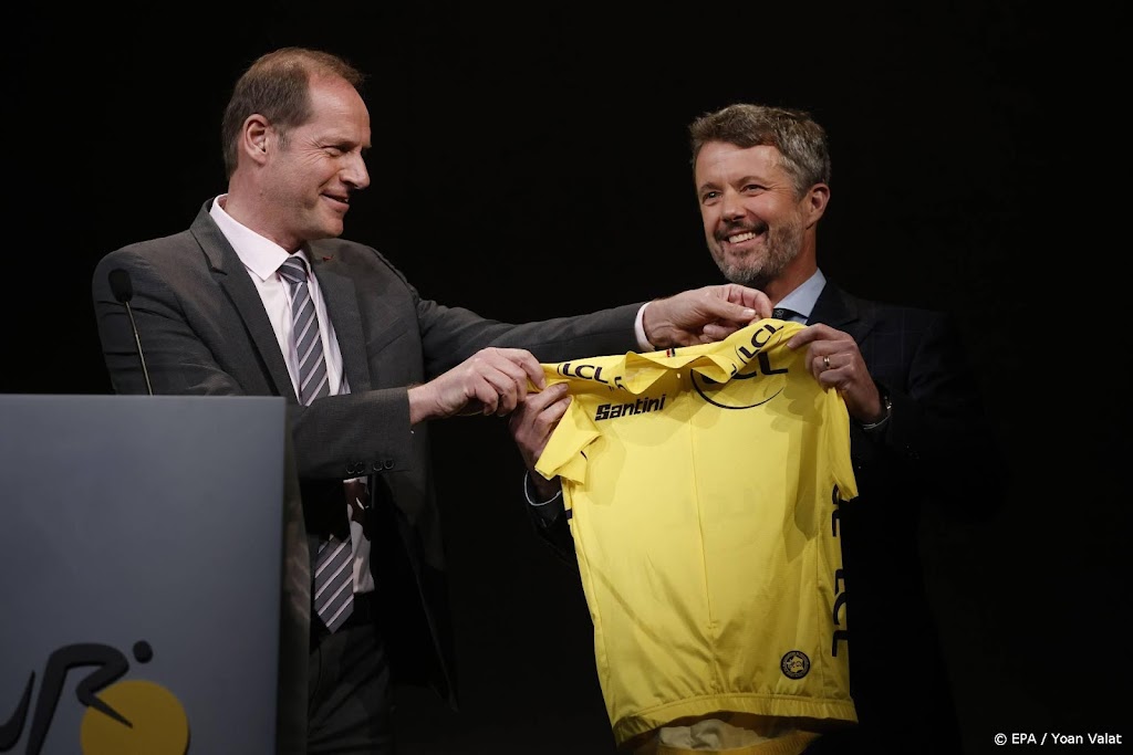 De kroonprins mocht bij de presentatie vertellen over de Tourstart van volgend jaar. De prestigieuze wielerwedstrijd begint in 2022 in Denemarken. Het is de eerste keer dat de Tour daar van start gaat. De eerste etappe is een tijdrit van 13 kilometer door Kopenhagen. Ook de tweede en derde etappe worden in Denemarken verreden. Na afloop van de presentatie ontving Frederik een gele trui van Tourbaas Christian Prudhomme.