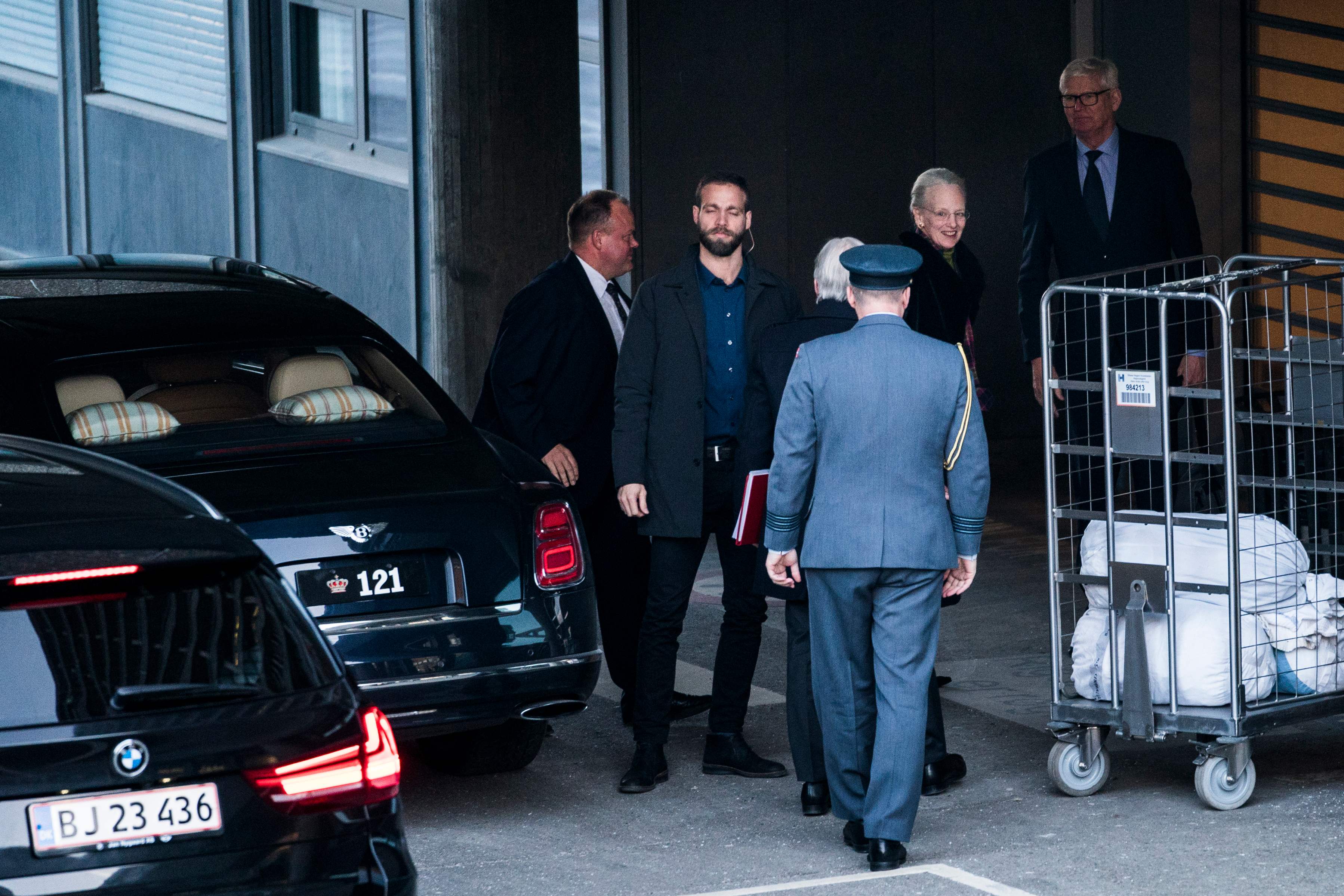 2018-02-09 00:00:00 Queen Margrethe of Denmark (2nd R) arrives at Rigshospitalet Hospital, to visit her husband Prince Henrik, whose health condition has deteriorated, on February 9, 2018 in Copenhagen, Denmark. / AFP PHOTO / Scanpix / Martin Sylvest / Denmark OUT