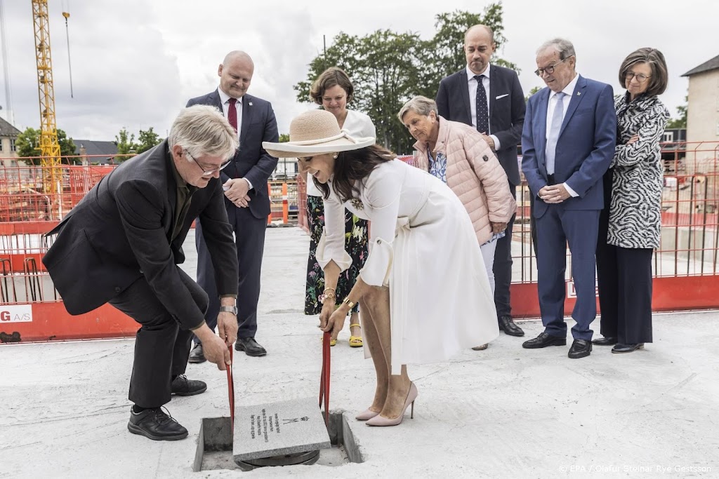 De Deense kroonprinses Mary heeft maandag in Kopenhagen de eerste steen gelegd van het nieuwe kinderziekenhuis dat naar haar is vernoemd. Samen met de projectmanager tilde de echtgenote van kroonprins Frederik de tegel op zijn plek.