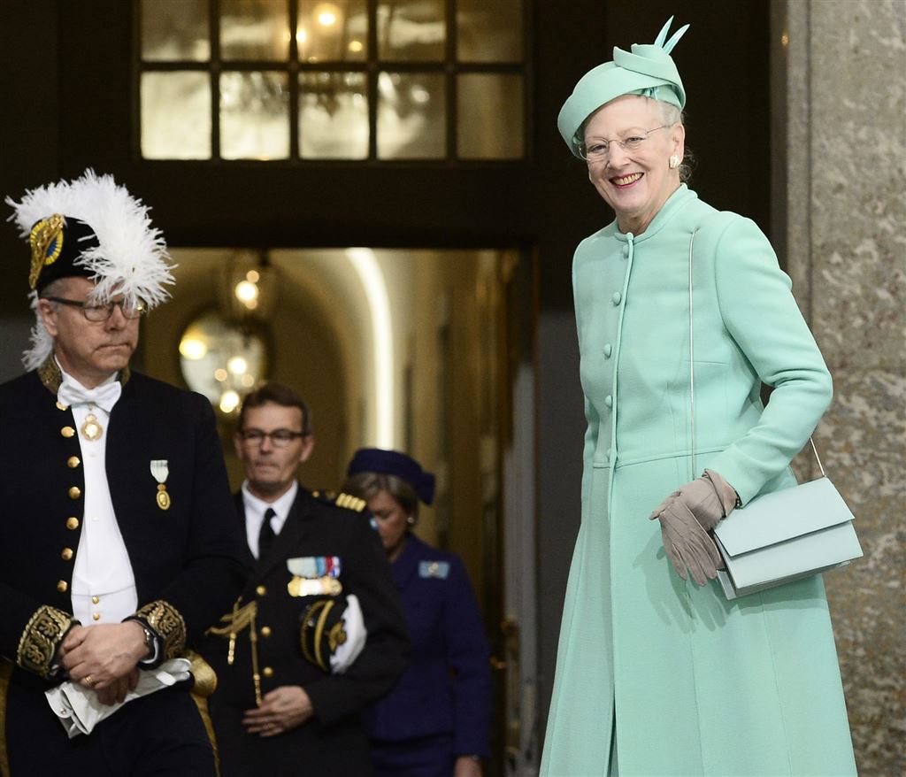 De koningin, gekleed in het blauw met bijpassende hoed, werd door tientallen mensen aan de kant verwelkomd, meldt Billed Bladet. Het dochtertje van de plaatselijke burgemeester mocht haar als eerste officieel begroeten met een bos bloemen.