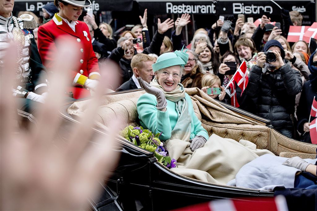 KOPENHAGEN – De Deense koningin Margrethe is donderdagmiddag tijdens een rijtoer van een halfuur door het centrum van Kopenhagen door tienduizenden Denen toegejuicht. Kort daarvoor hadden duizenden Denen op het grote plein voor paleis Amalienborg de vorstin en haar familie al toegezwaaid en met hoerageroep ontvangen.